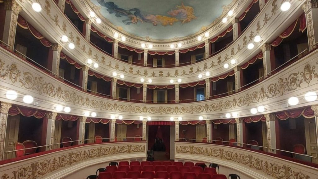 La struttura, caratterizzata da uno stile neoclassico, presenta una sala con tre ordini di palchi scanditi da pilastri corinzi e decorazioni eleganti. Nel corso dell’Ottocento il teatro divenne centro della vita artistica cittadina, ospitando opere liriche, operette e spettacoli di prosa. Dopo un periodo di declino, durante il quale fu utilizzato anche come magazzino nella Seconda Guerra Mondiale e subì la perdita del sipario storico, il teatro è stato restaurato e riaperto nel 1987 con un concerto di Severino Gazzelloni. Oggi, con i suoi 156 posti, rappresenta un luogo intimo e apprezzato per spettacoli, concerti ed eventi culturali.